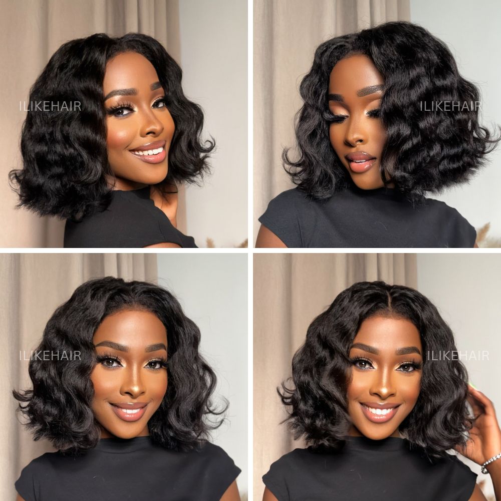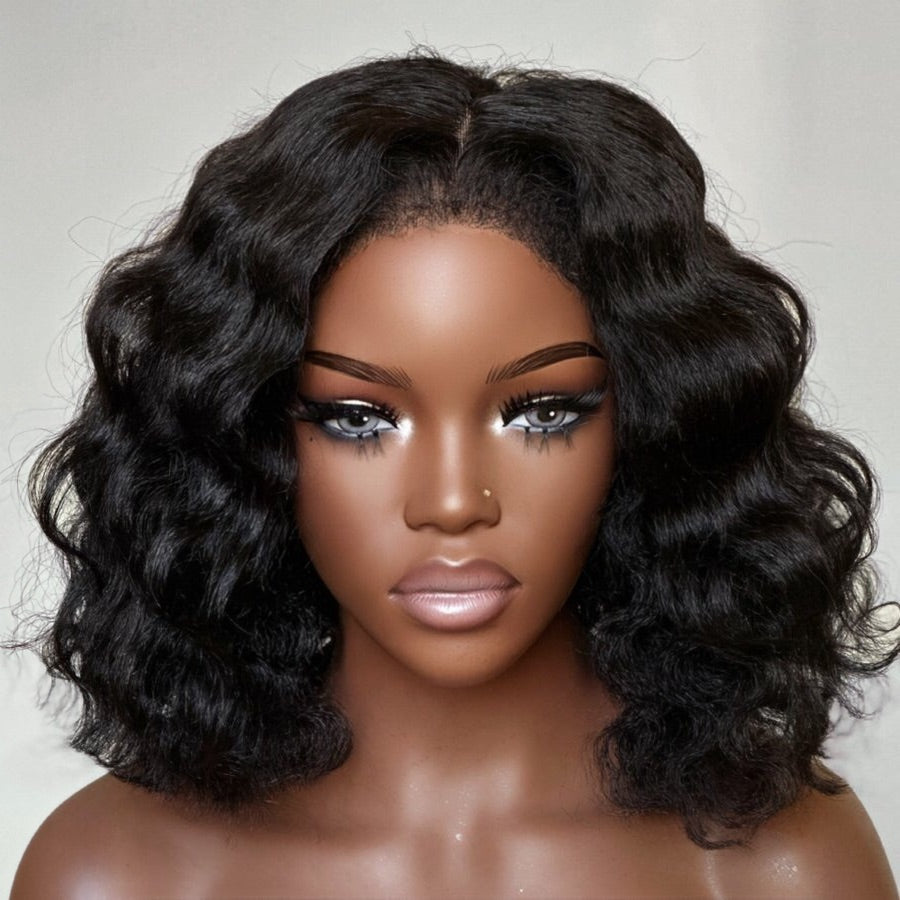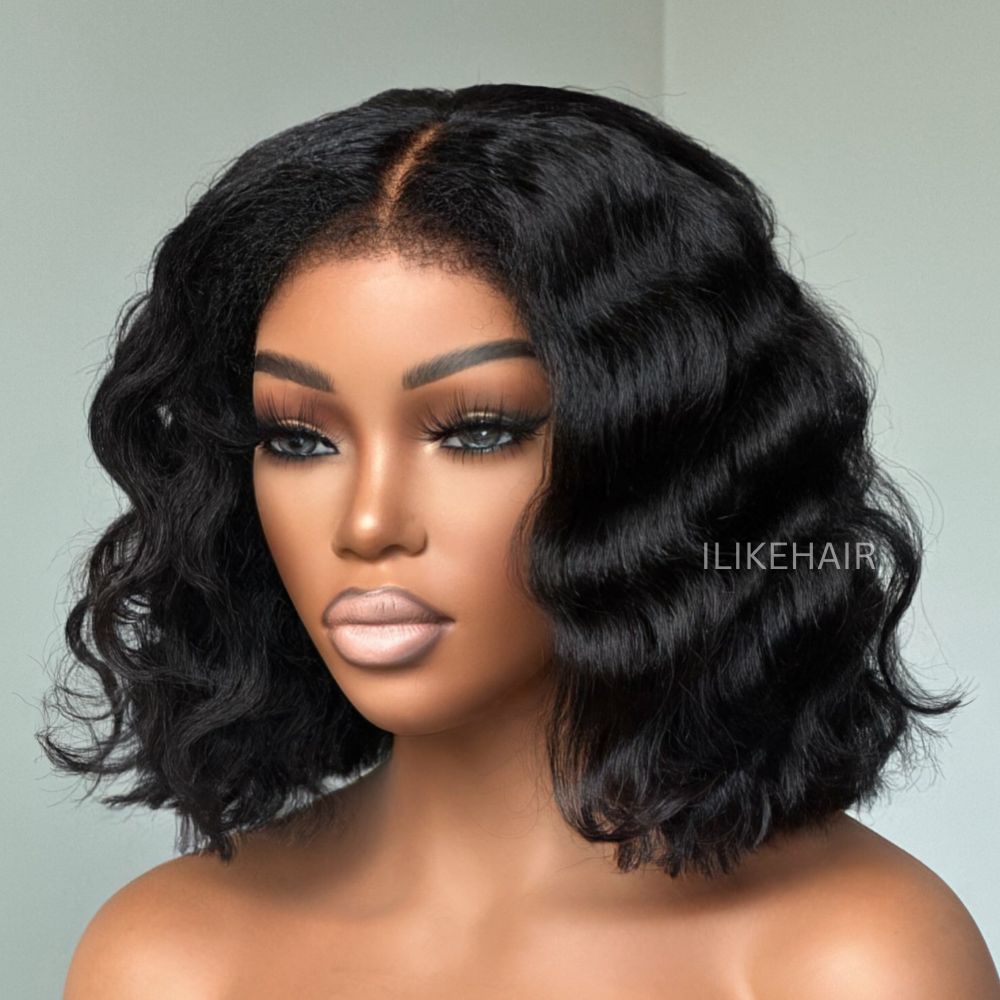 • Put on & Go Short Wavy Bob Pre Cut HD Lace With Kinky Edges Wig